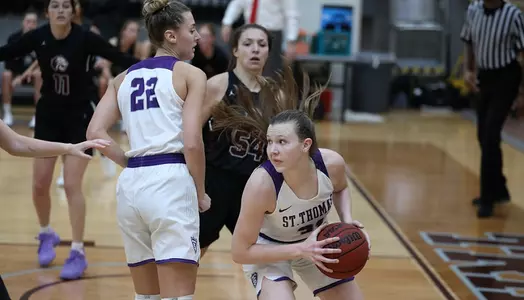 But that streak was tested for much of Tuesday's contest. The Tommies trailed 30-29 at halftime and were still behind 39-38 early in the fourth quarter before Macy Hatlestad's two 3-point baskets highlighted a 21-0 run.