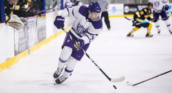 The Purple managed just 13 shots on goal over 65:00 on the clock on Saturday. Henry Baribeau played the final 44:00 in goal and allowed just one goal. Justin Kelley and Panvica scored the firt two St. Thomas goals. Panvica has scored five goals in the last three games.