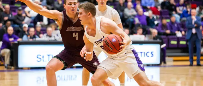 NORTHFIELD, Minn. - Four nights after collecting a top-five win over Saint John's on the road, third-ranked St. Thomas men's basketball went back to work and earned another tough road victory. The Tommies went in to Skoglund Center on Wednesday night and came away with a 76-69 win over St. Olaf to improve to 22-2 overall and 18-1 in the MIAC.