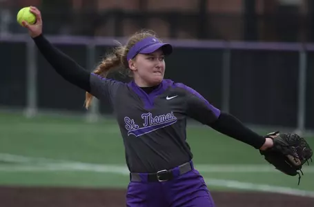 Elise Barnes and Sam Birling each slapped two-run doubles to highlight an eight-run third inning that put St. Thomas ahead to stay. Alyssa Erdman's RBI ground out and Coryn Jacobson's RBI single scored two insurance runs in the sixth inning for a 10-7 lead. Annie Naughton had thtree hots in the opener and two more in game two.